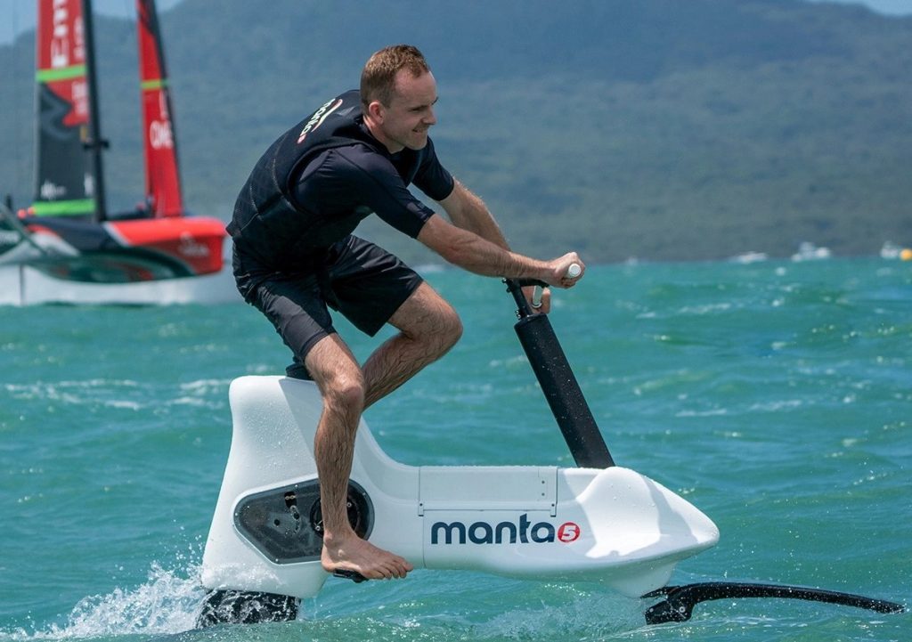 A growing category of megayacht accessories is bicycle watercraft. Surprisingly, these are not a new invention. These creative machines were introduced in the 1800s and were known as aquatic velocipedes. Today’s popular designs include upright or recumbent seating, solo or tandem configurations, and monohull or multihull floatation. Some of these designs even include hydrofoils.