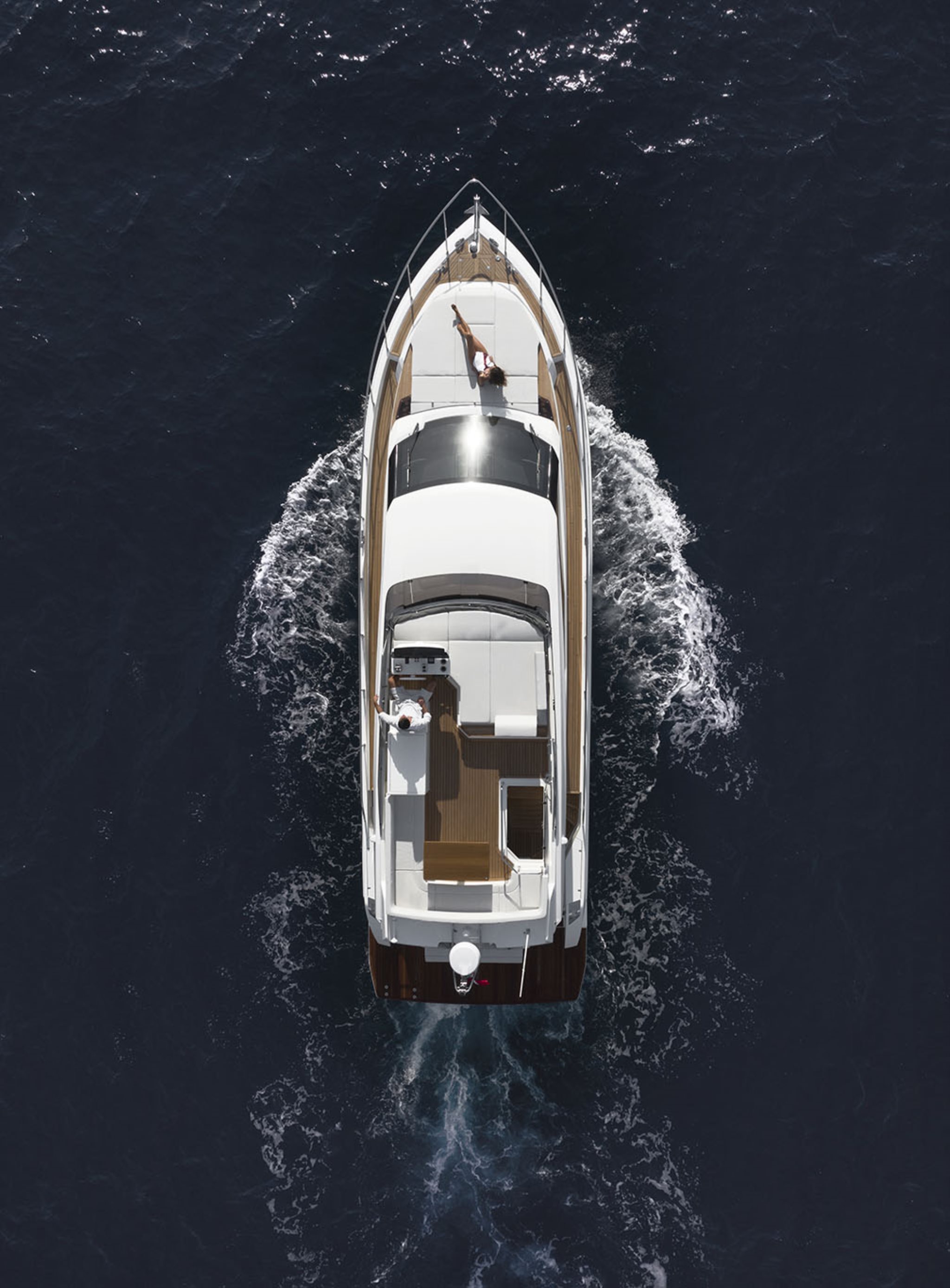 Breathtakingly beautiful, astonishingly comfortable, and personalisable inside with two alternative interior-design moods, the Ferretti Yachts 500 ushers in a new era for the brand. The brand new yacht combines nautical adventure with the domestic dimension in spaces and solutions of a comfort you’d normally expect only on rather larger craft. The overall effect is a family ambience that immerses guests in a sensation of total wellbeing. Rediscovering the pleasure of leisure, by yourselves or with your nearest and dearest, means living your yacht like the exclusive, authentic multi-sensory habitat she is.