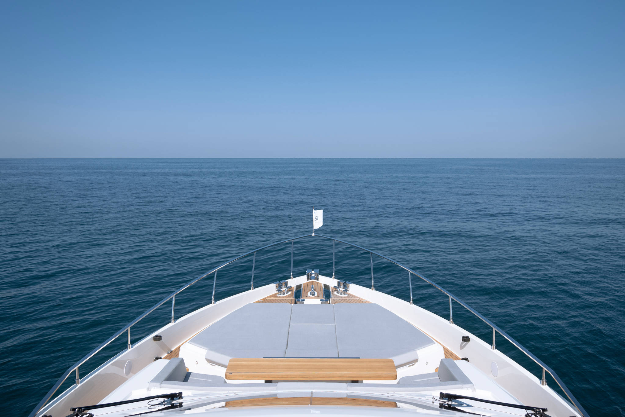 This flybridge yacht, with its streamlined design, sleek lines and sharp styling, satisfies the owner’s every wish in terms of comfort, style, seaworthiness and safety at sea.