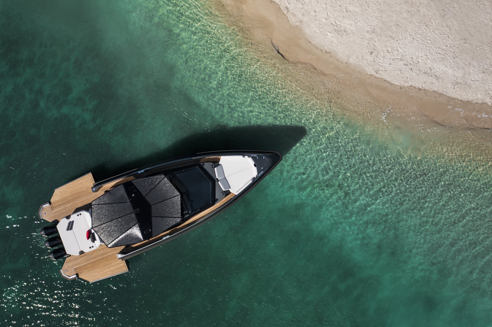 Flexibility is another defining trait of the wallytender43X, which converts easily between a family day boat, superyacht tender or resort shuttle. The innovative centre cockpit offers optimum protection for guests and the convenience of a walkaround. Enjoy the freedom of the upholstered foredeck sunlounge, or seek the shade of Wally’s striking sailcloth hard-top.