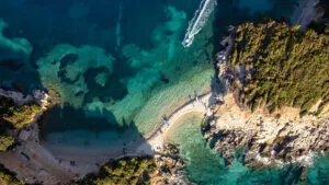 Best beaches in Albania and Europe. Ksamil Island on the Albanian Riviera. Drone photos of the best beaches in the world.