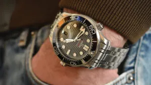 Since 1993, the Seamaster Professional Diver 300M has had a legendary following. The dial features laser-engraved waves and a date window at