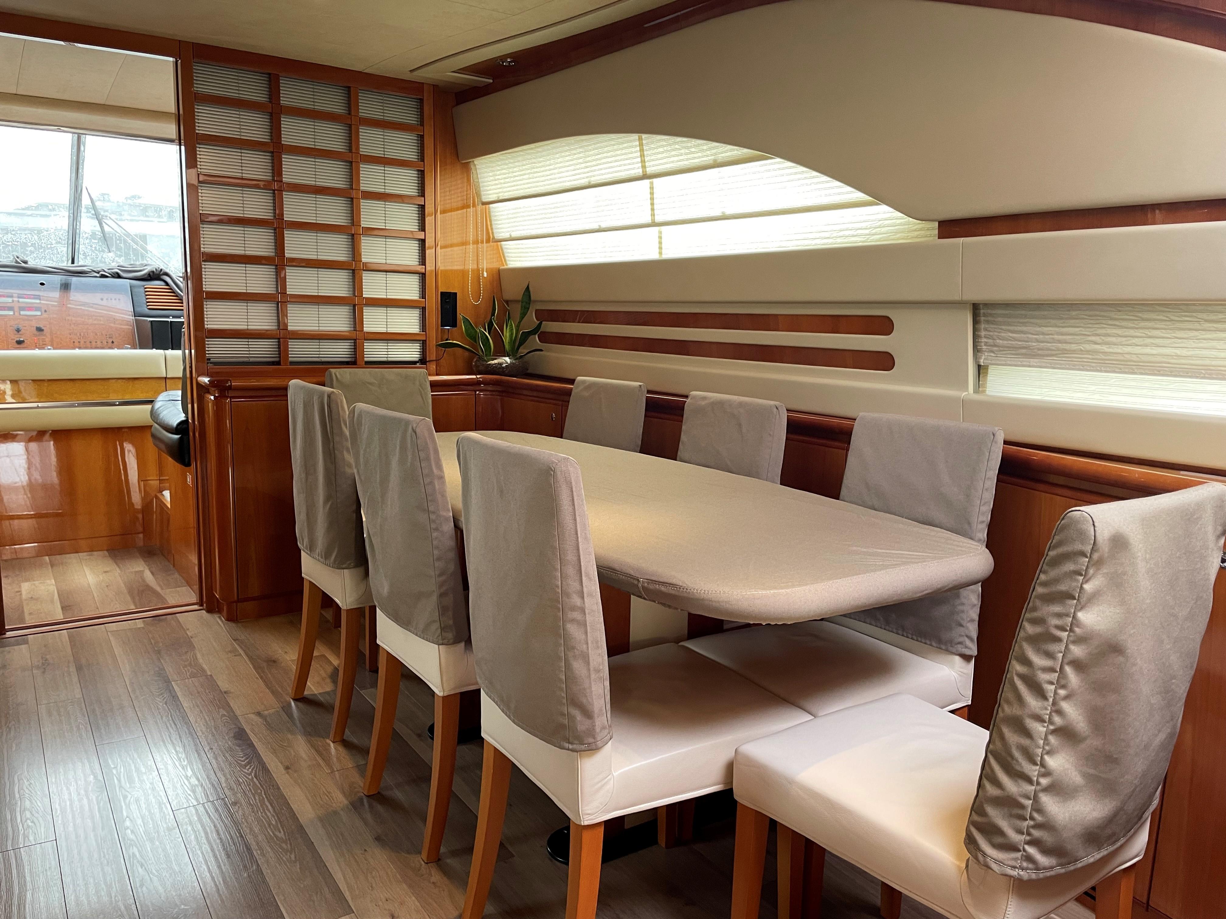 The 761 represents the style and the revisited tradition of Ferretti within a new concept of comfort that merges with that of well-being. This new yacht maintains the characteristics of a big boat with luxurious finishings but it also offers a new relaxing space in the night area of great atmosphere. The ship owner's cabin is the jewel of this boat, designed to offer a complete view immersion in the sea. Placed lengthwise, it has a large panoramic window with two lateral portholes for an open-view solution offering an ideal exploitation of the outside light. Another great news is given by the spacious bathroom of the ship owner's cabin, a real area of well-being furnished like a Turkish bath. It is made even more precious by a mosaic inner lining and it is furnished with a removable bench in teak with a flat washbasin which can also be used as a reaction bathtub.