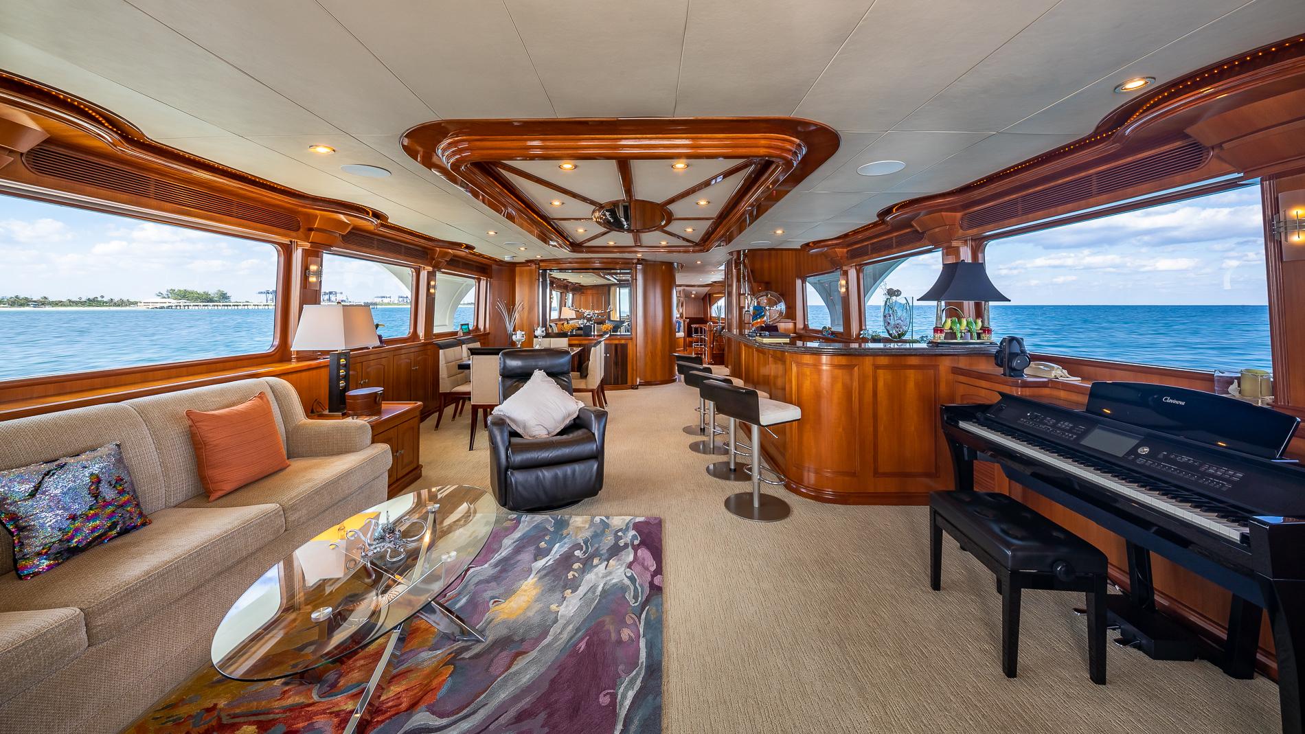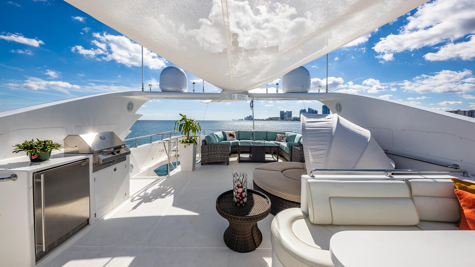A standout feature is the addition of a hydraulic swim platform, which frees up extra deck space, resulting in a beautifully expanded sun deck while also lowering the yacht's center of gravity for improved stability. This platform makes launching and retrieving tenders effortless. Powered by sought-after CAT C32 engines with low engine hours (just 2,000), this yacht stands out as a rare find in the 100-foot range, offering exceptional value. Currently showcased in Fort Lauderdale, Florida, it's an incredible opportunity to own a meticulously maintained vessel at an attractive price point.