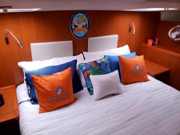 The standard Aquila 44 features 3 cabins with en suite heads.