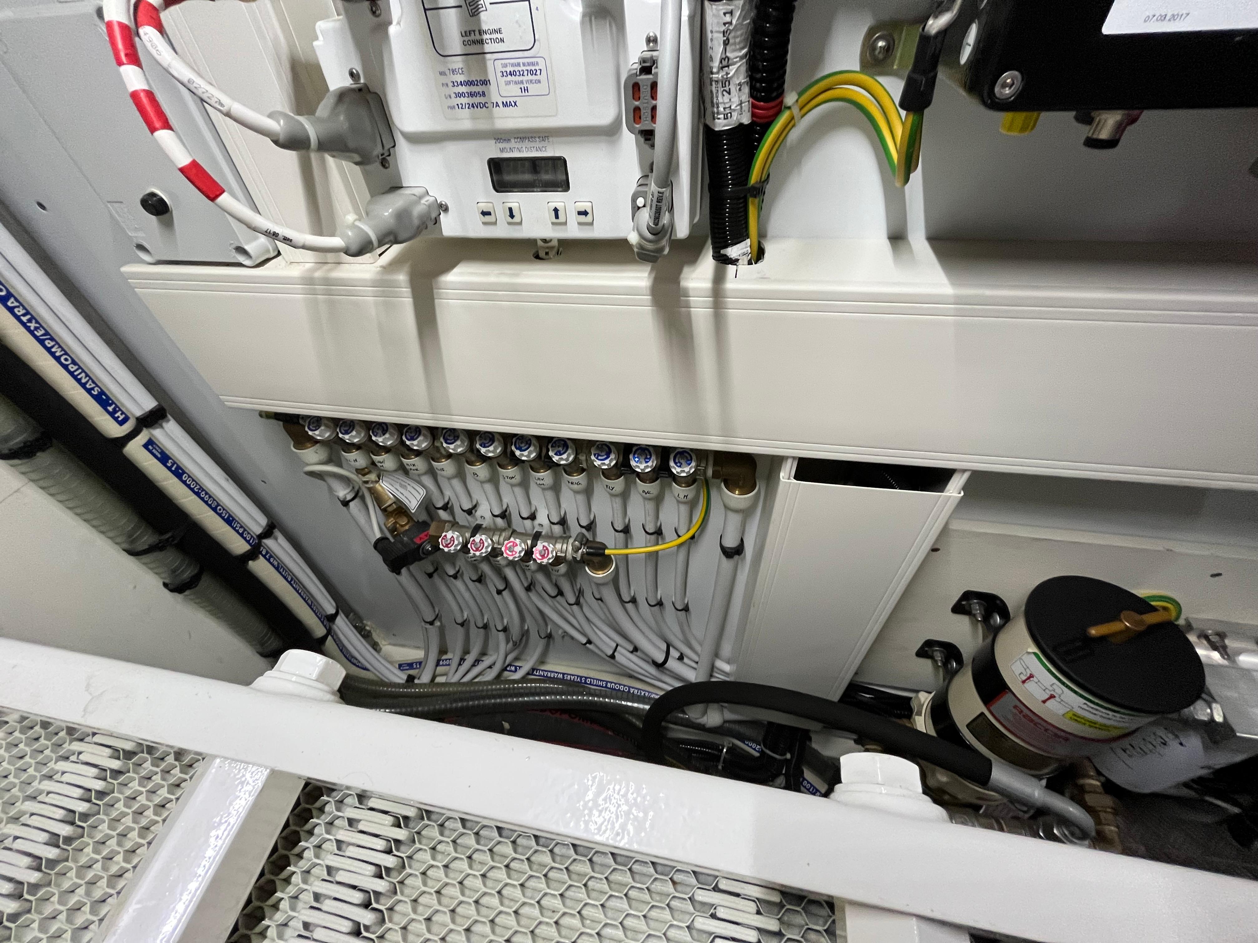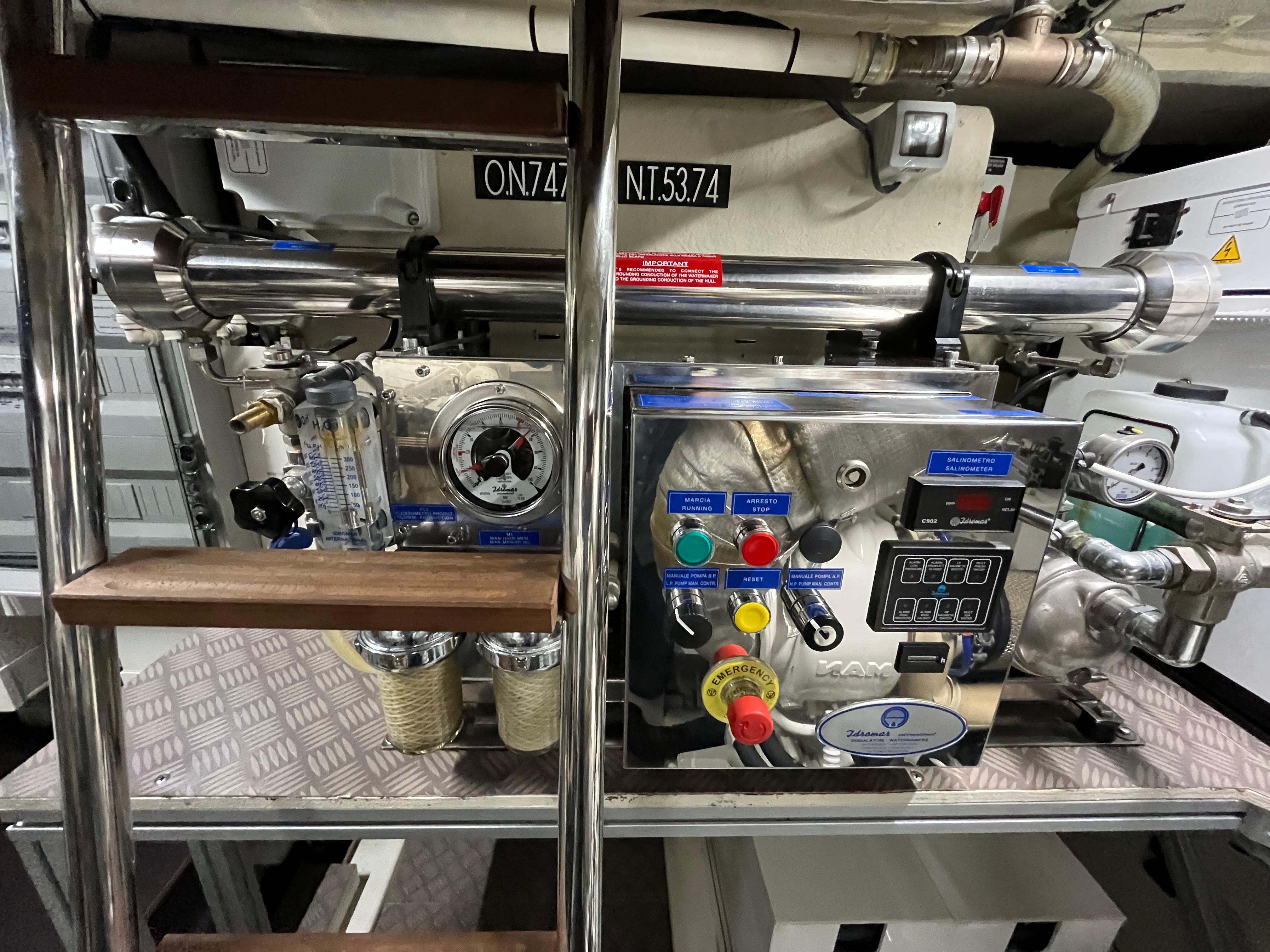 The Group’s Centro Stile has found very appealing décor solutions, adding elegance to all onboard ambiances and preserving the range’s unique Made-in-Italy style and charm. The cockpit and the aft area of the salon stand out for an impressive décor consistency. Indeed, the teak flooring found in the cockpit continues indoor, in the galley and the entrance, visually and 'physically' harmonising these different environments. This flawless continuity is also ensured by the new three-section glazed door that can be folded to starboard and concealed behind the stairs leading to the flybridge. The perfect harmony between form and content, aesthetics and functionality is completed by the ceiling panel decoration, which is the same in the salon and outdoor, creating as a sort of 'style mirror' that welcomes all guests at best. The cockpit thus becomes an extension of the interiors, which can be opened completely onto the sea on all sides.
