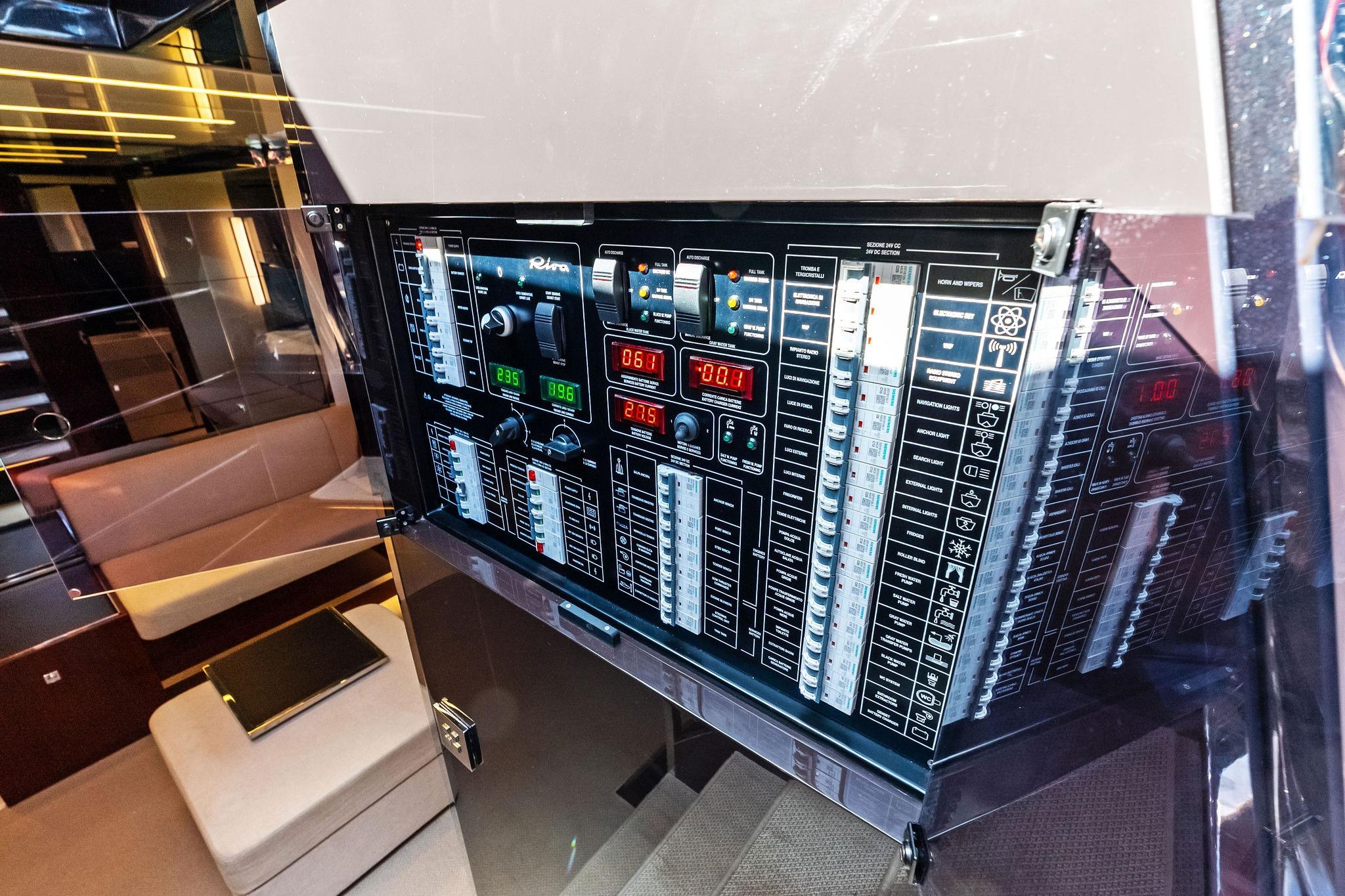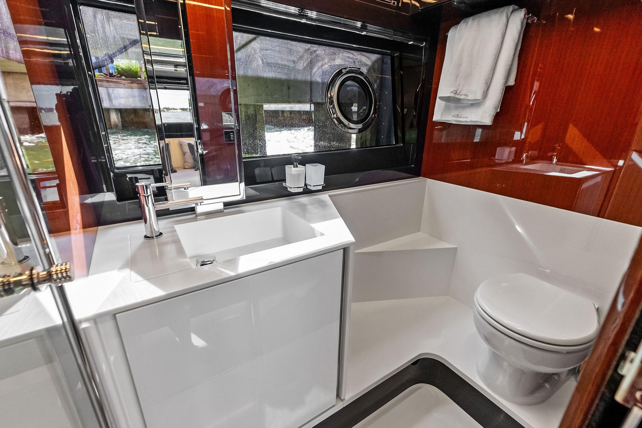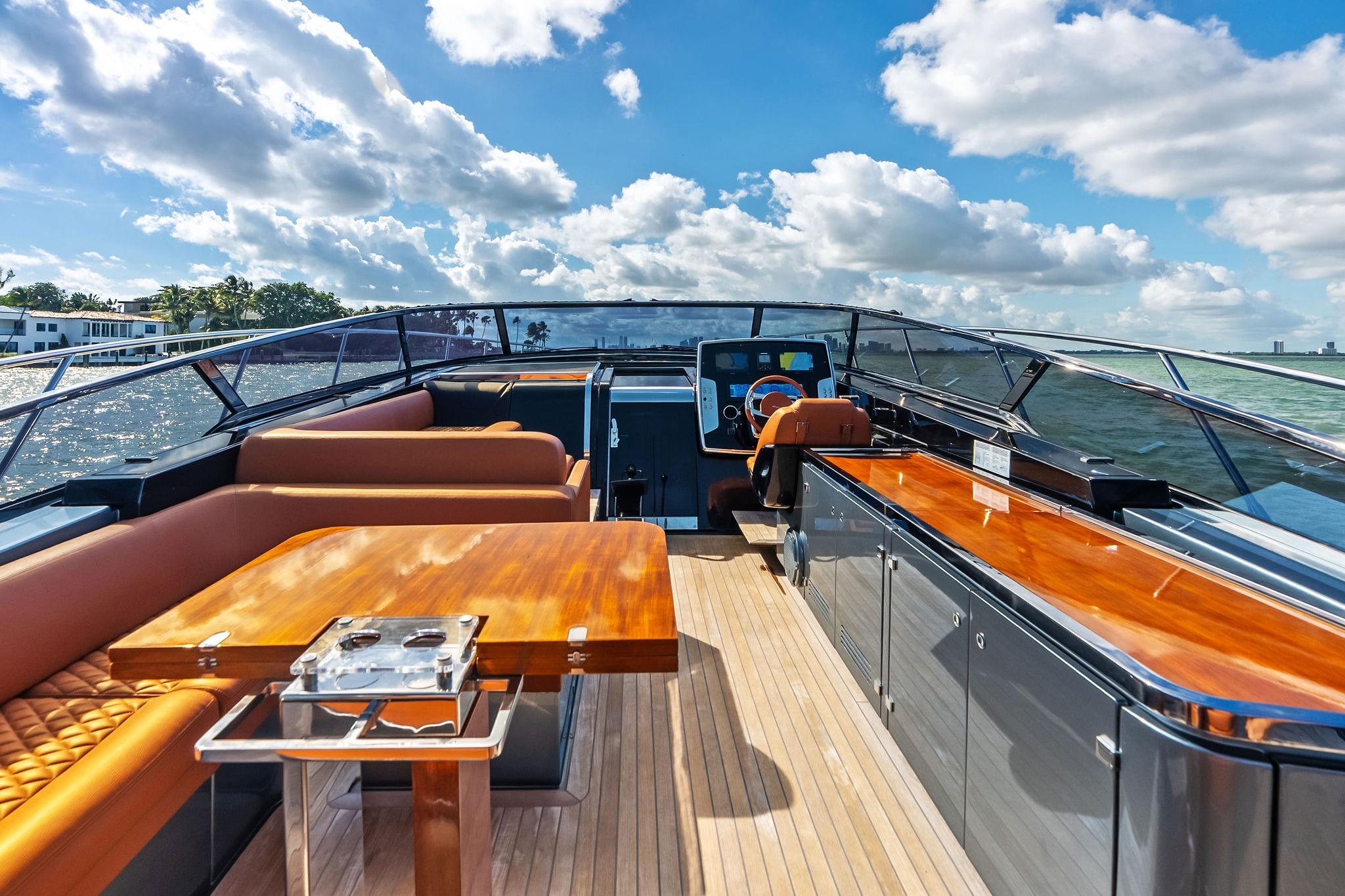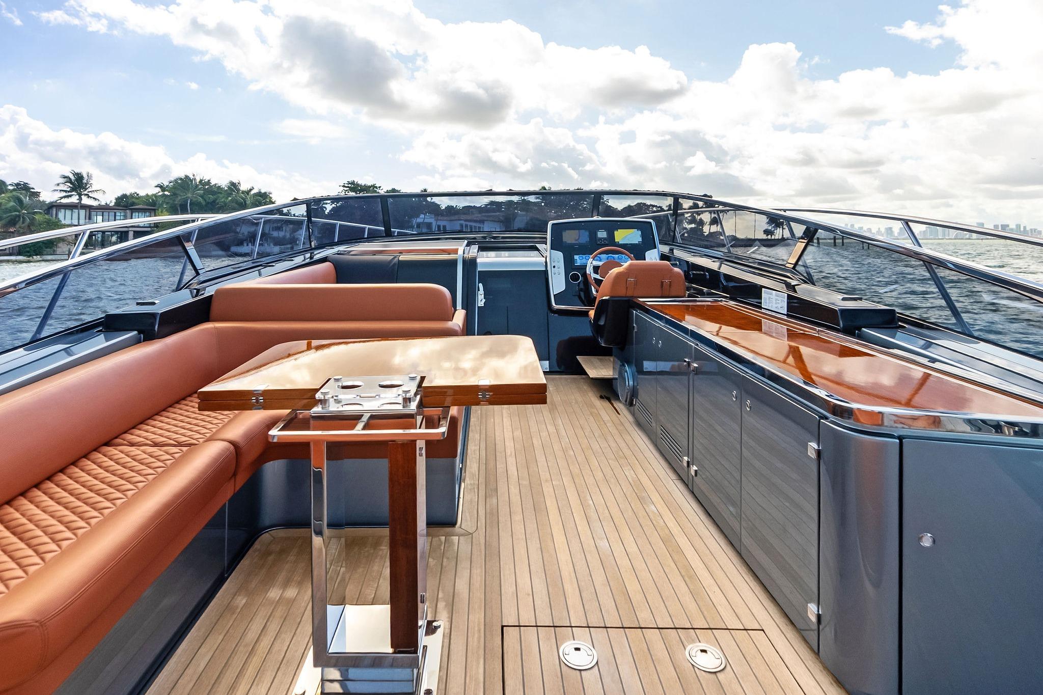 This 56' Riva Rivale is the latest example of the finest marine luxury vessel. Her stunning exterior is sultry, and the interior is filled with glossy mahogany timber, electric Venetian blinds, and ambient lighting. Hailing from the Ferretti Group, this model is a piece of marine artwork. Not only is she perfect for hosting events with premium TVs and a Fusion Sound System, this Rivale is loaded with every option including Watermaker, Seakeeper, an AB Tender, and LED underwater lights for your perfect cruise. Access to the cockpit deck is via the rounded swim platform that offers entry steps both port and starboard. The teak cockpit offers a bar area, icemaker, refrigerator, and grill for entertaining. The radar tower is arched to compliment the shape of the vessel. A sunbed is located both on the bow and aft, equipped with a Bimini for your comfort. She boasts 3 cabins, all with plentiful space for family and guests. The interior follows the same lines and stylings as the exterior. The master is to the forward and offers natural light. Guest quarters are located to the aft. The artistry, craftsmanship, and technology make this one of the most alluring open cruisers on the market.