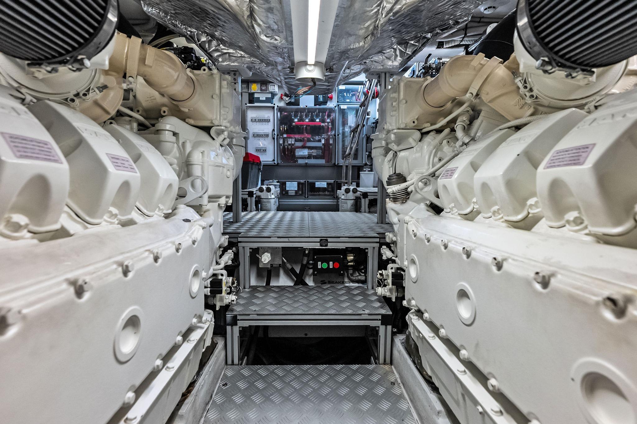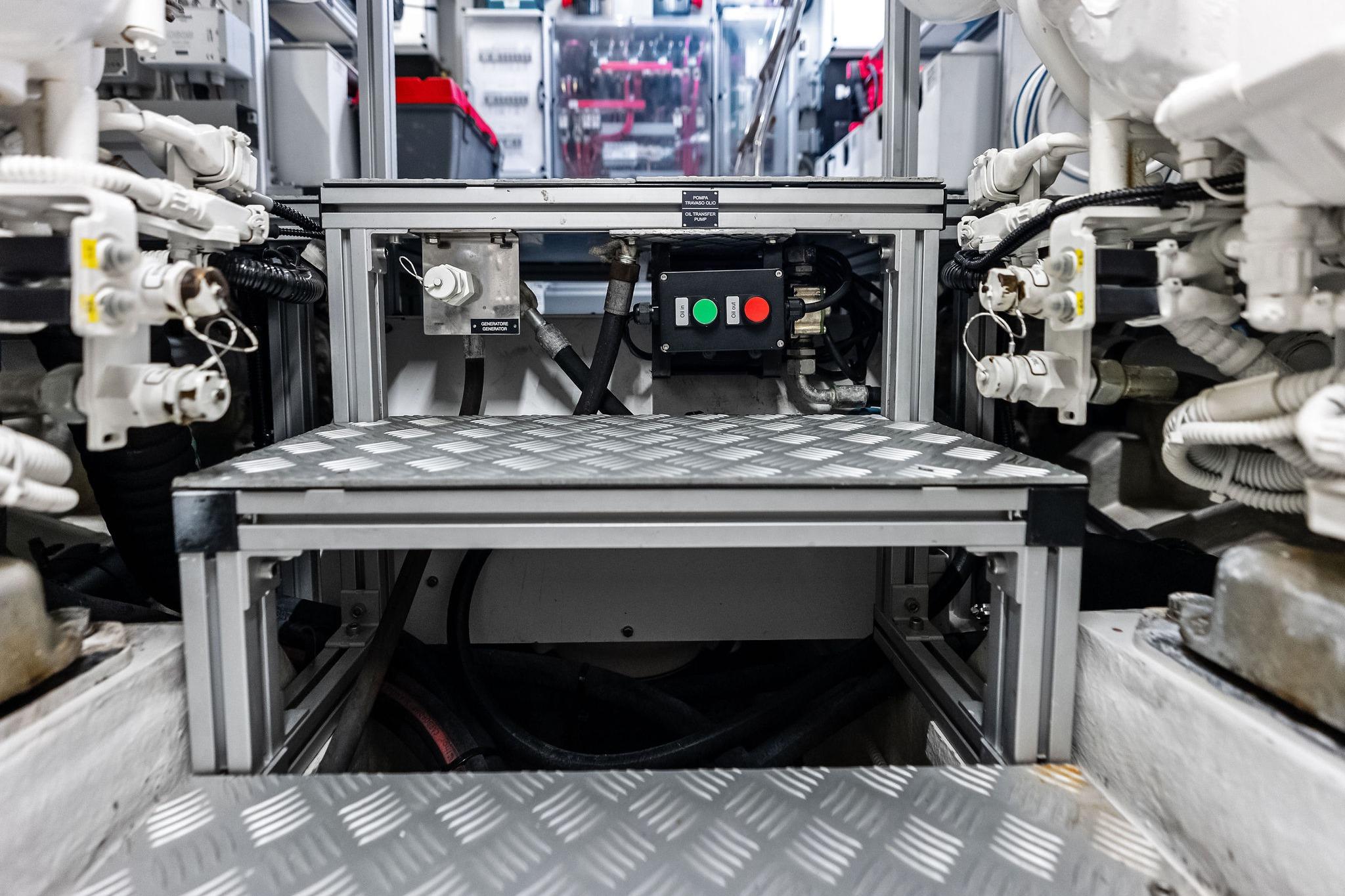 Concealed stainless steel electro-hydraulic gangway with automatic stanchions and teak flooring
