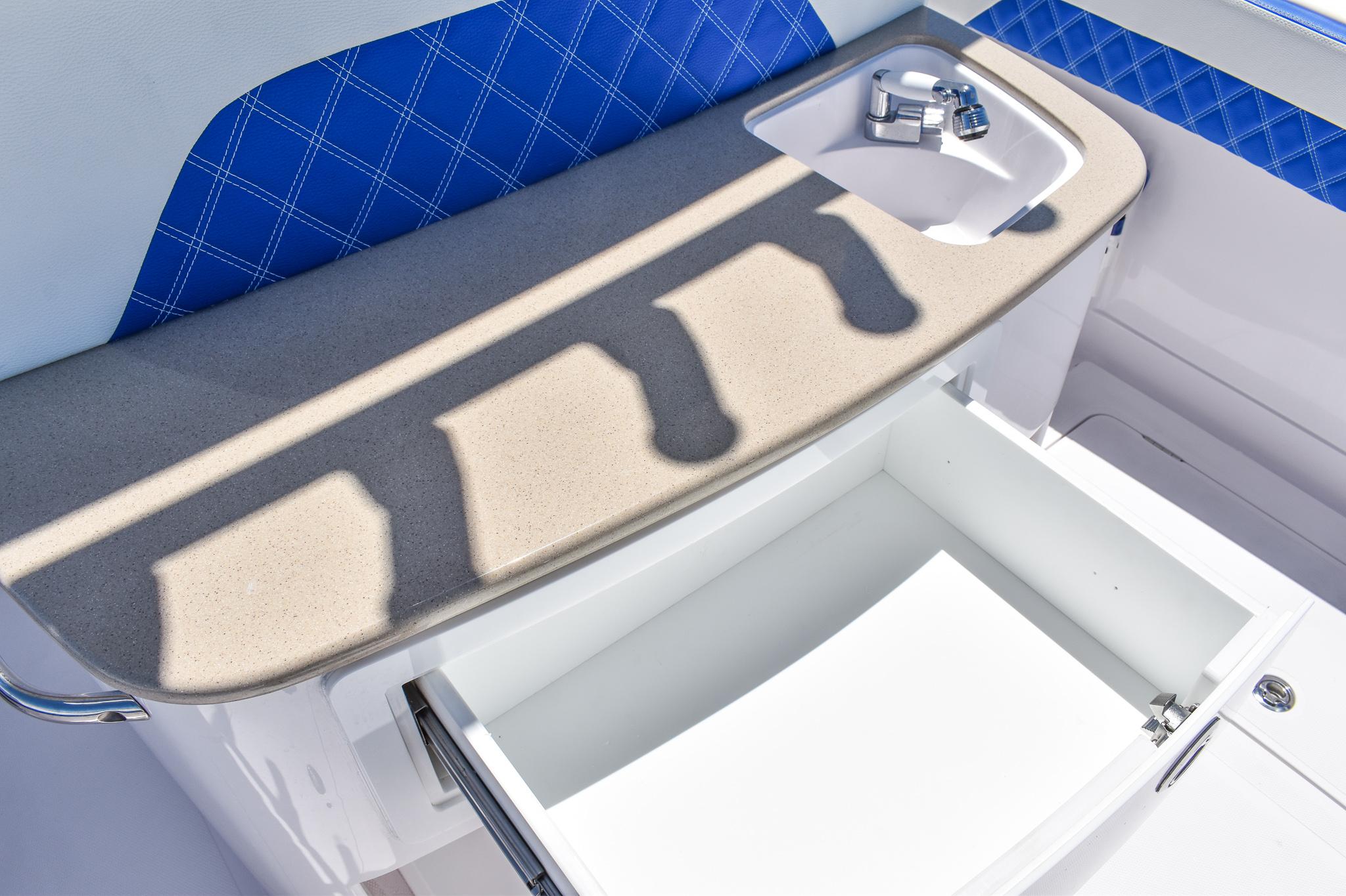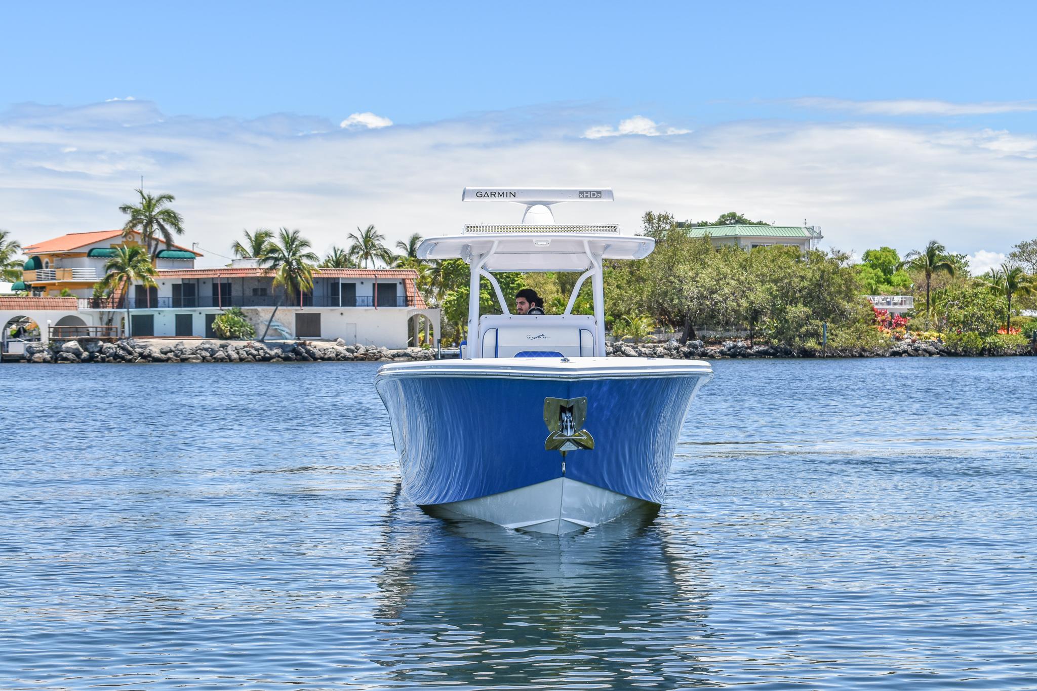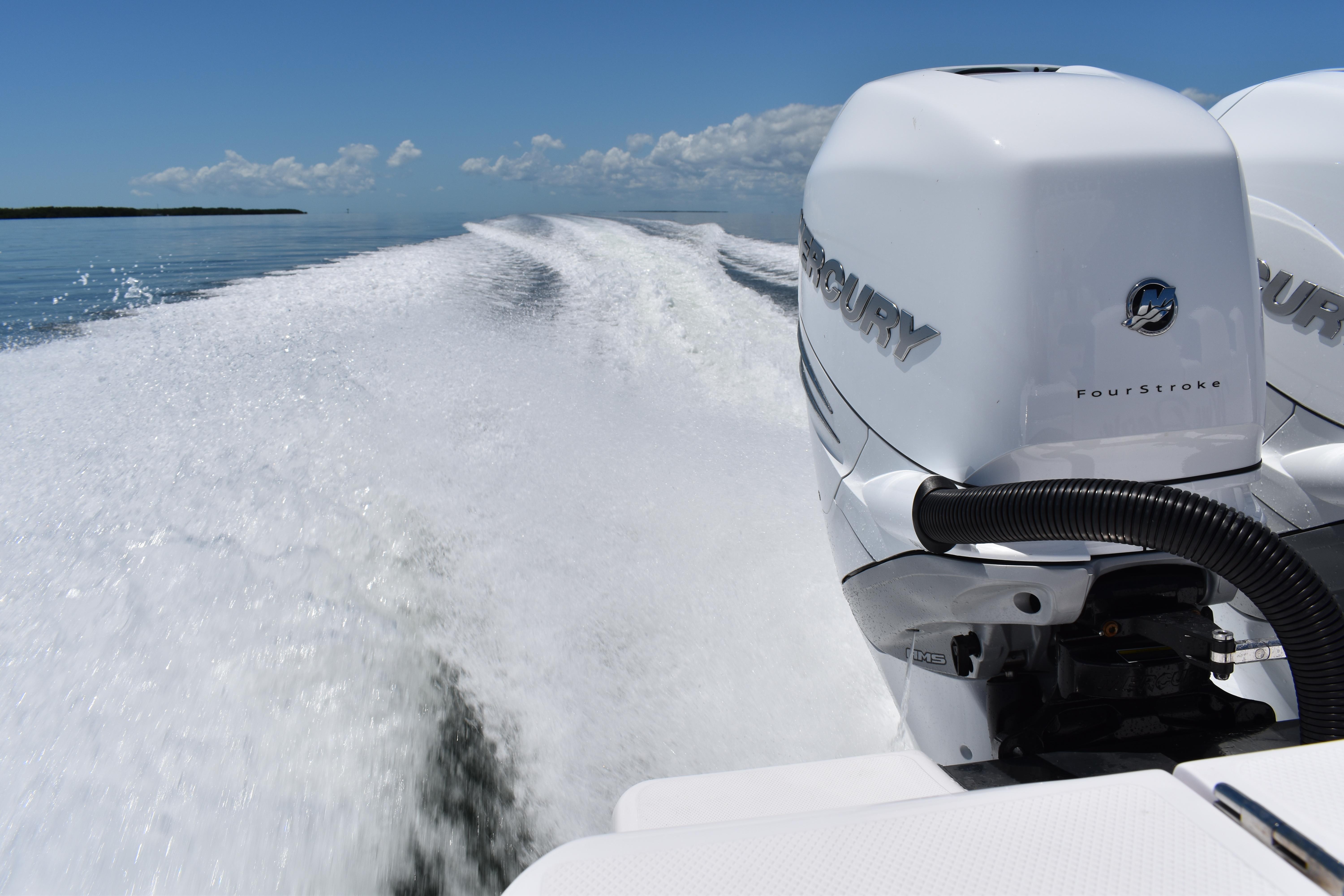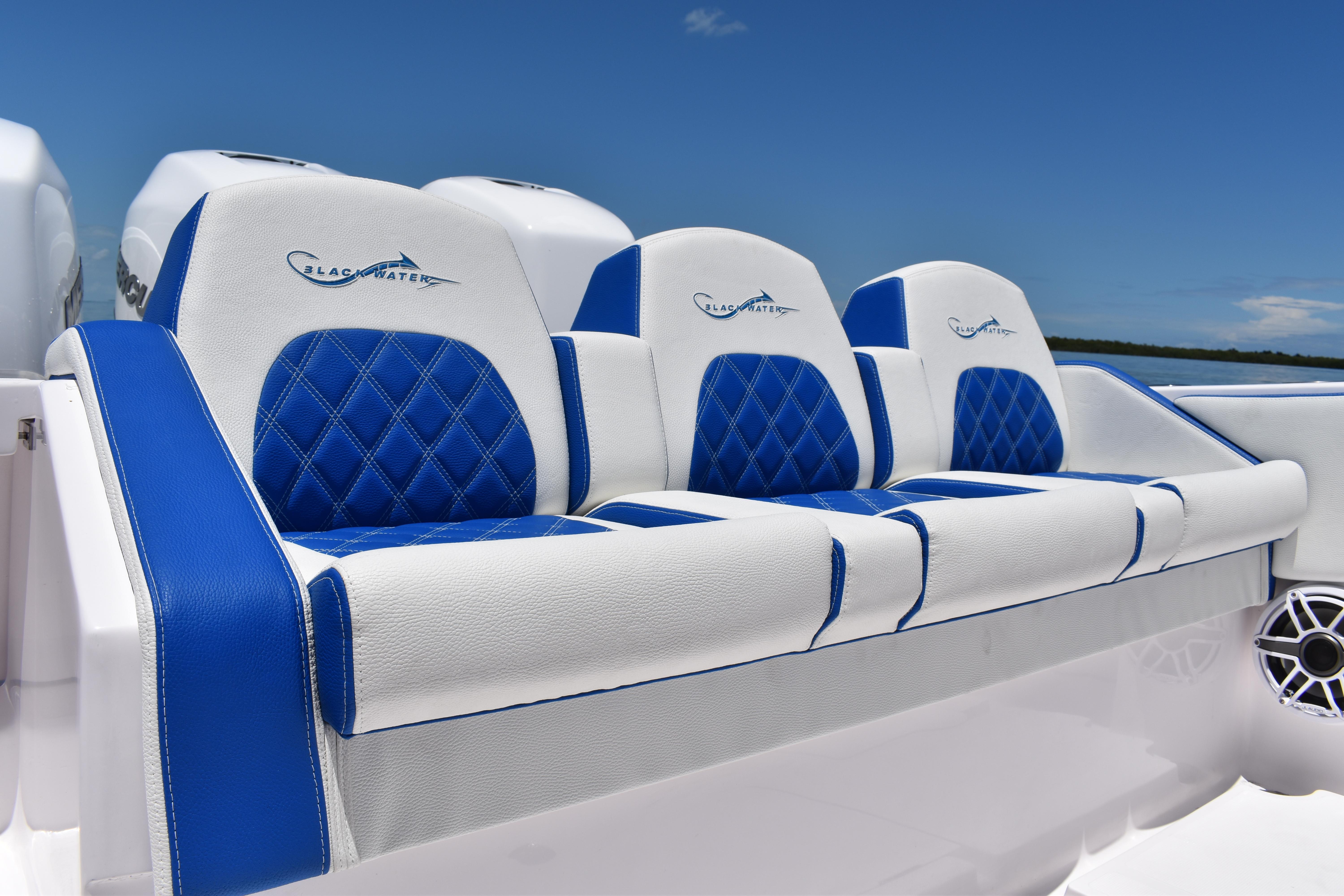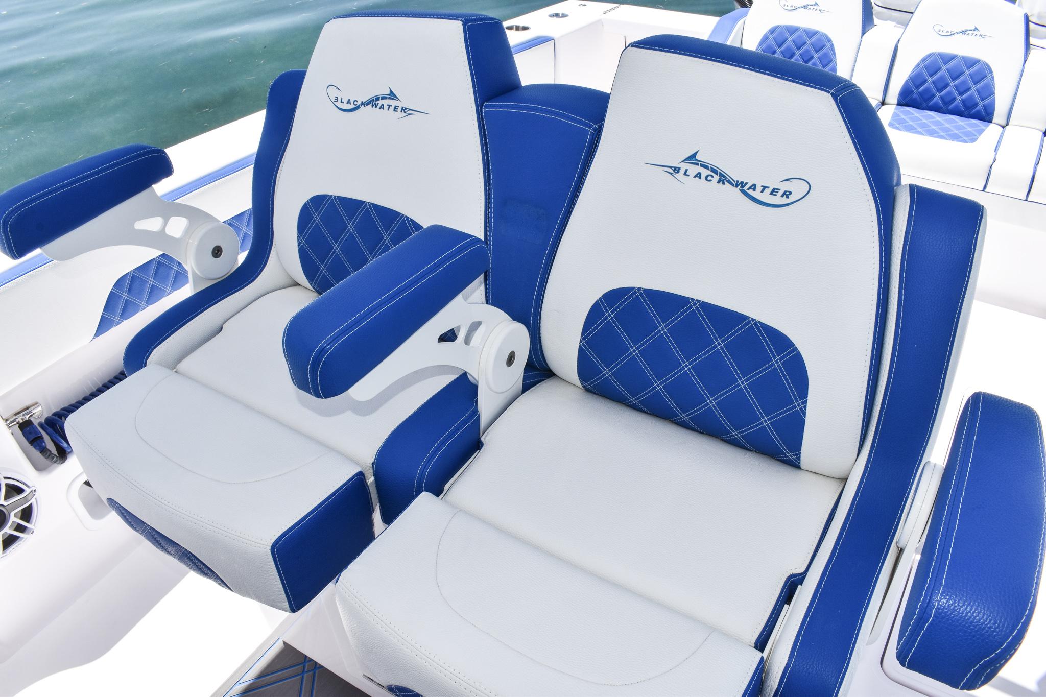 Powered by triple Mercury Verado 400s, this boat features a stunning Lauderdale Blue hull. This Certified Pre-Owned 36' Sport offers speed and sporty handling as well as luxurious details that come standard on any Blackwater build. This boat comes equipped with many desirable upgrades including Autopilot, Garmin Electronics, and an Upgraded JL Audio Sound System. Her low-hours, triple Mercury 400s offer speed while making it an excellent choice for families, fishing trips, or crossing to the Bahamas.