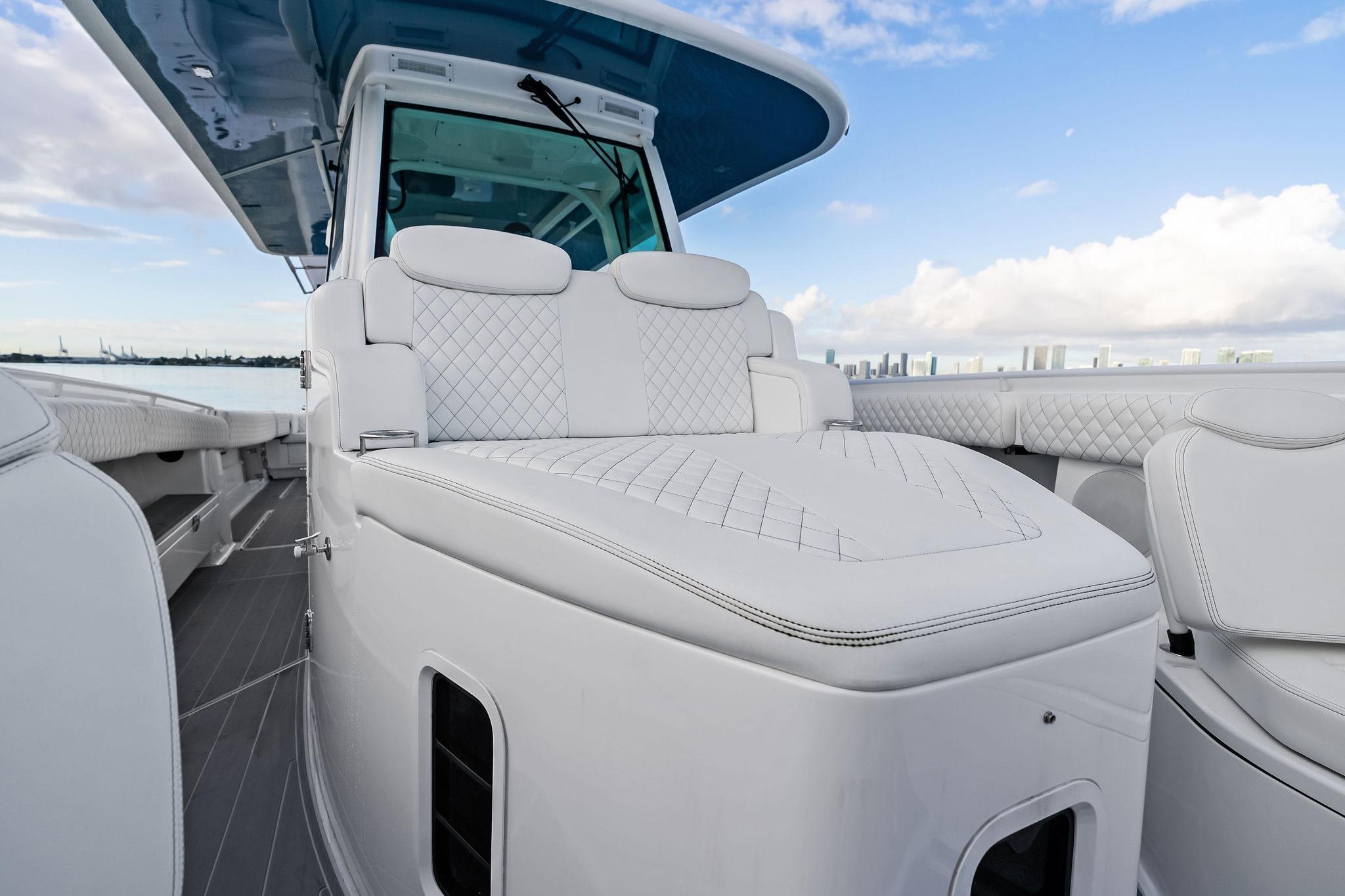 Equipped with integrated radar, FLIR night-vision systems, bow thruster, joystick, autopilot, and Skyhook, this Lujo delivers advanced situational awareness and operational capability in all light and weather conditions. These premium navigation and safety tools elevate confidence, situational awareness, and peace of mind on extended trips offshore.