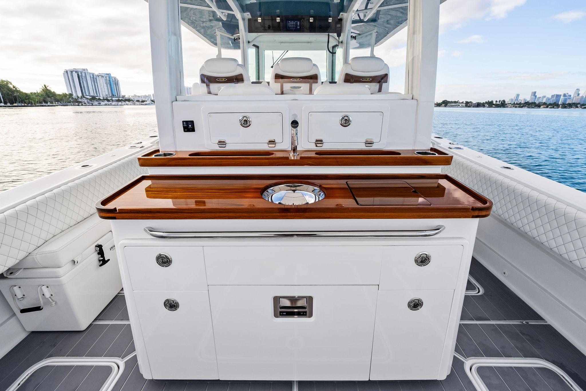 This 2023 HCB Lujo is a standout example of what modern center console yachts were designed to be — a high-performance offshore machine with the comfort, technology, and refinement expected at the top of its class. With only 280 hours and a lifetime of lift-kept storage with no bottom paint, premium upholstery, high-gloss wood accents, full wet bar, and summer kitchen with rear-facing Garmin, this vessel shows impressively pristine condition below and above the waterline.