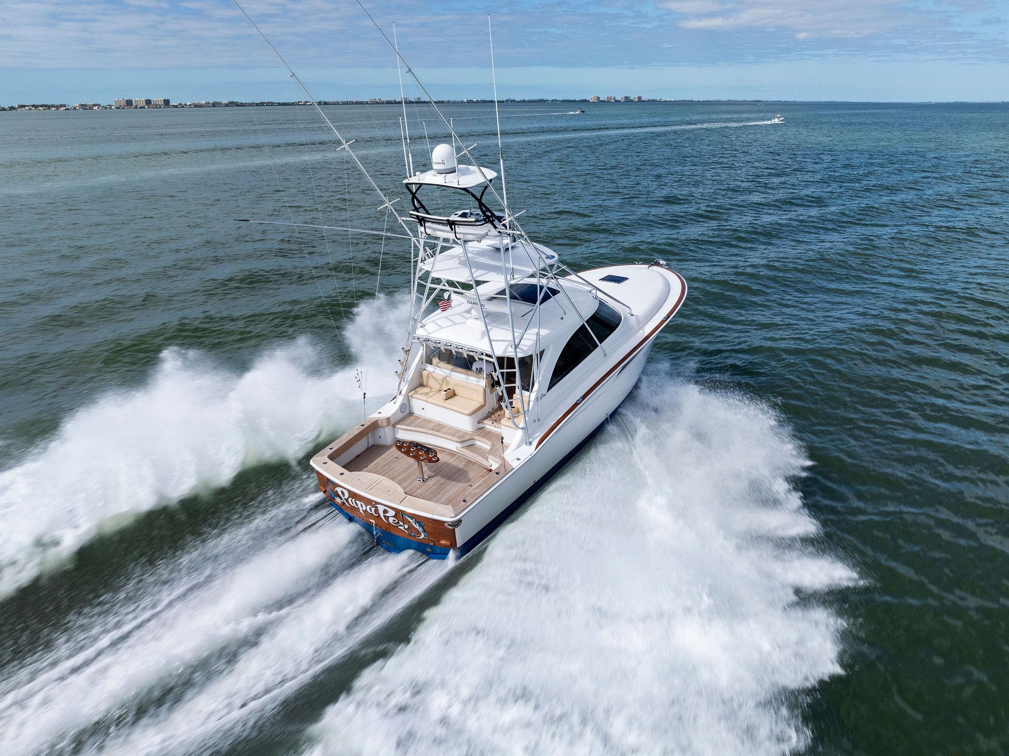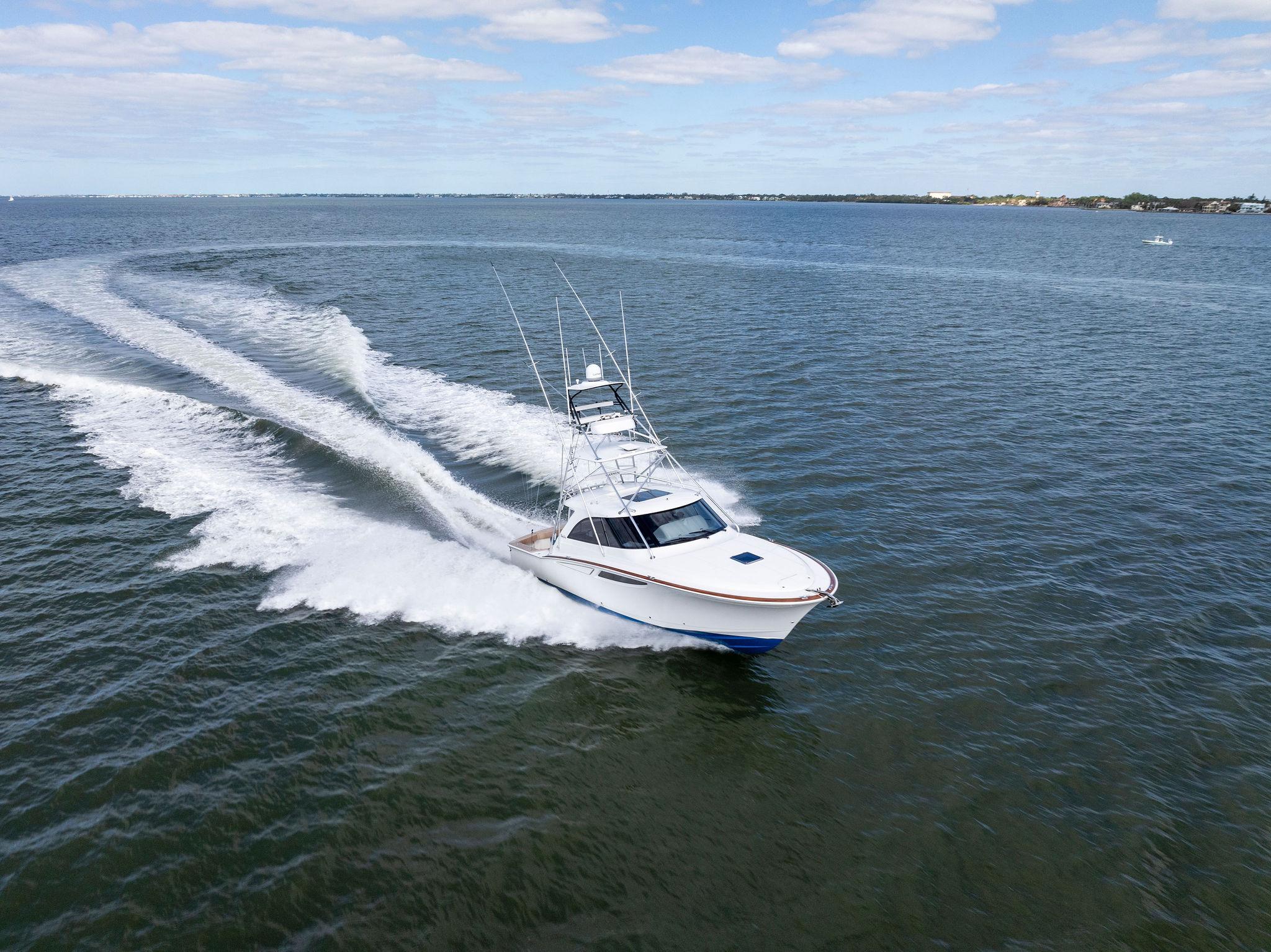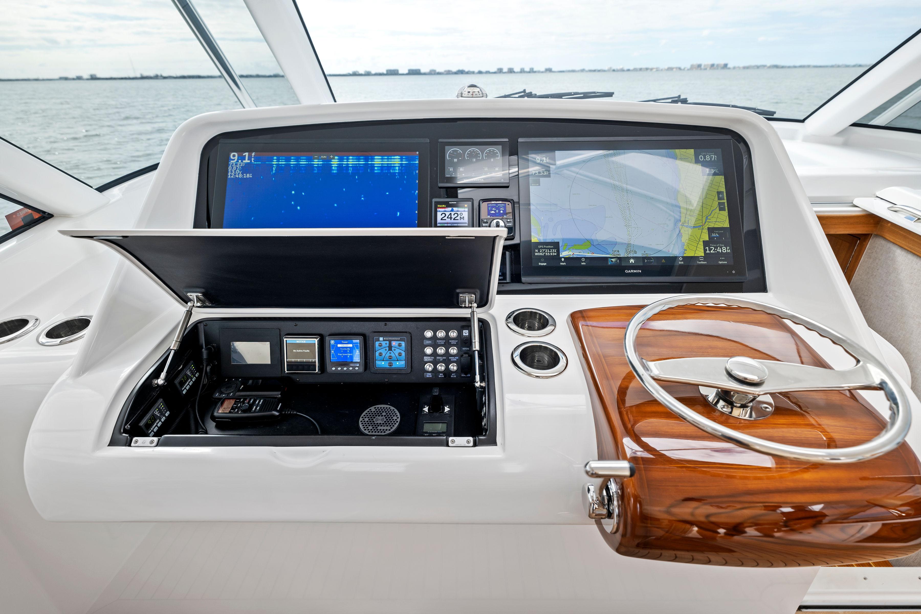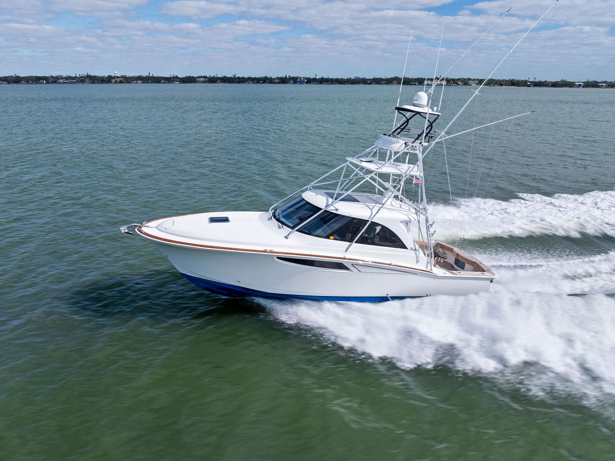 Performance: Powered by D13 Volvo engines with straight shaft drives, this Mag Bay cruises effortlessly at 34kts. and hits a top speed of 42Kts. The combination of power and efficiency ensures you'll get to your fishing grounds quickly and with ease.