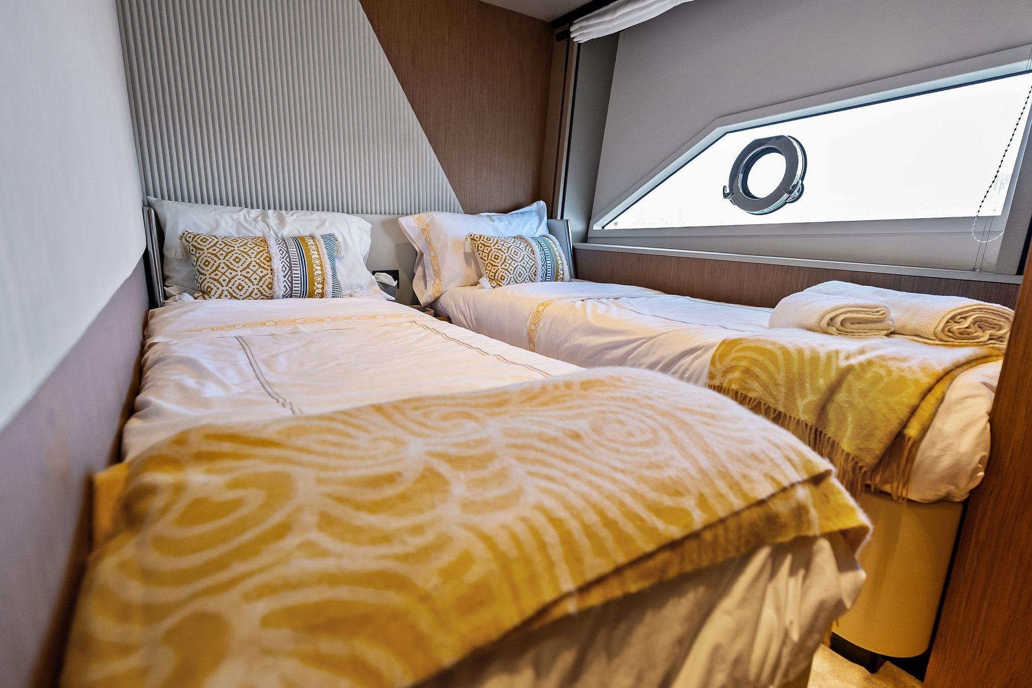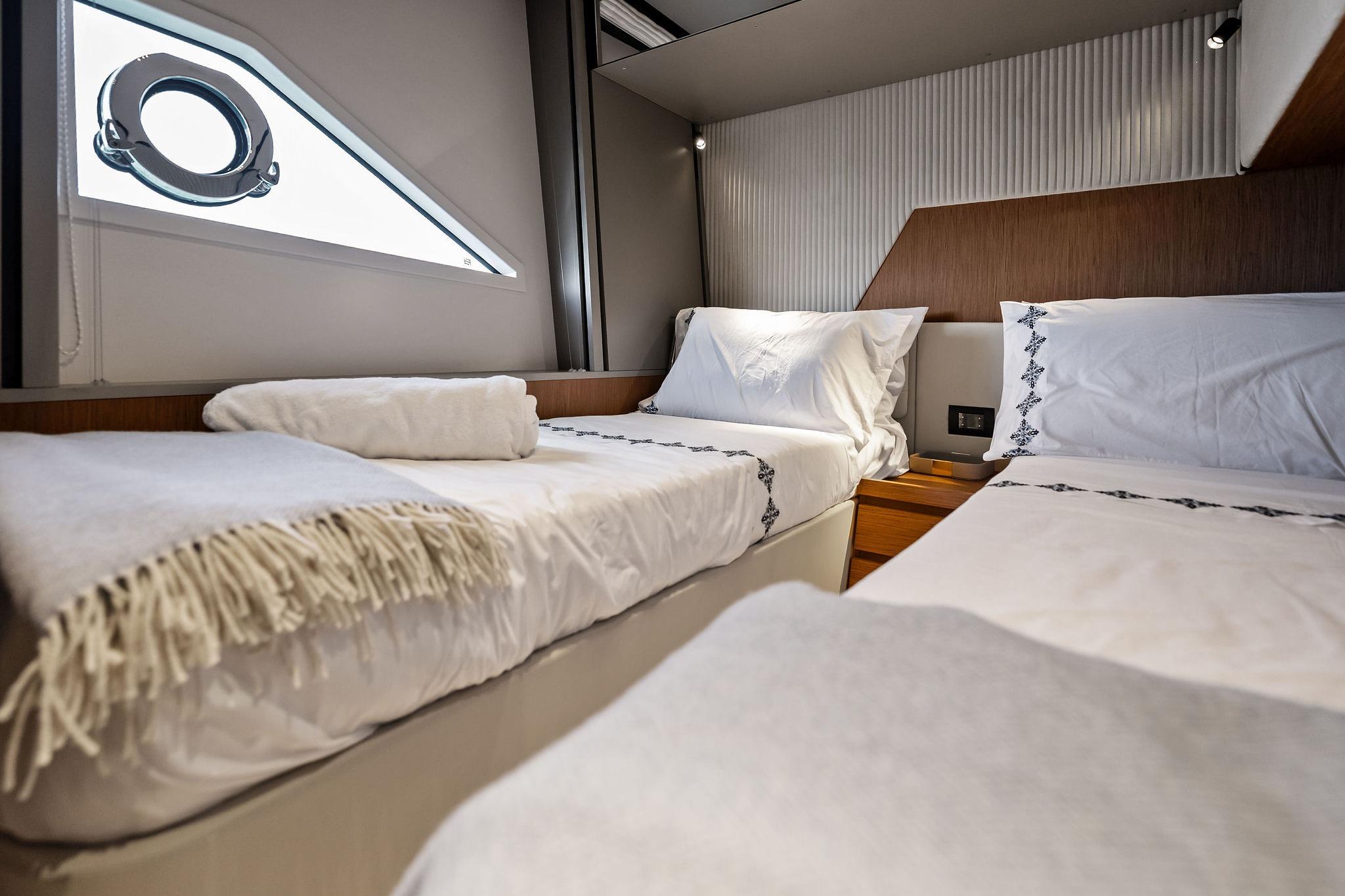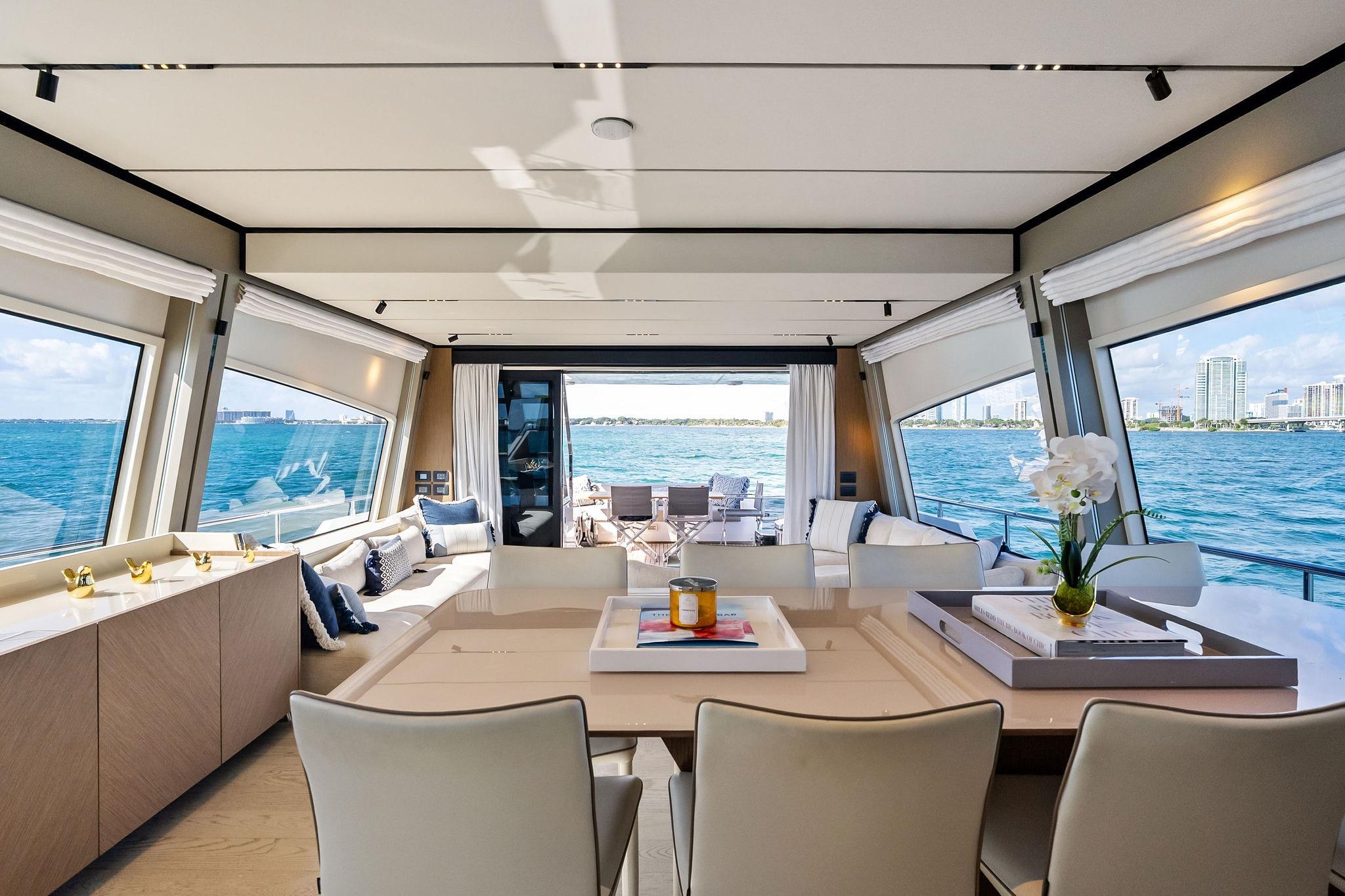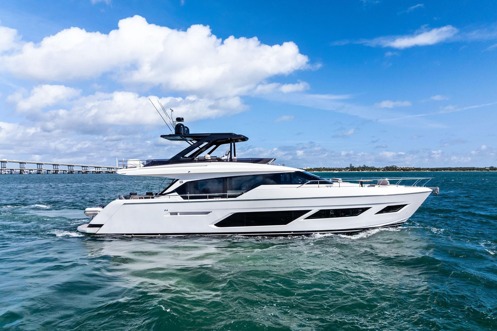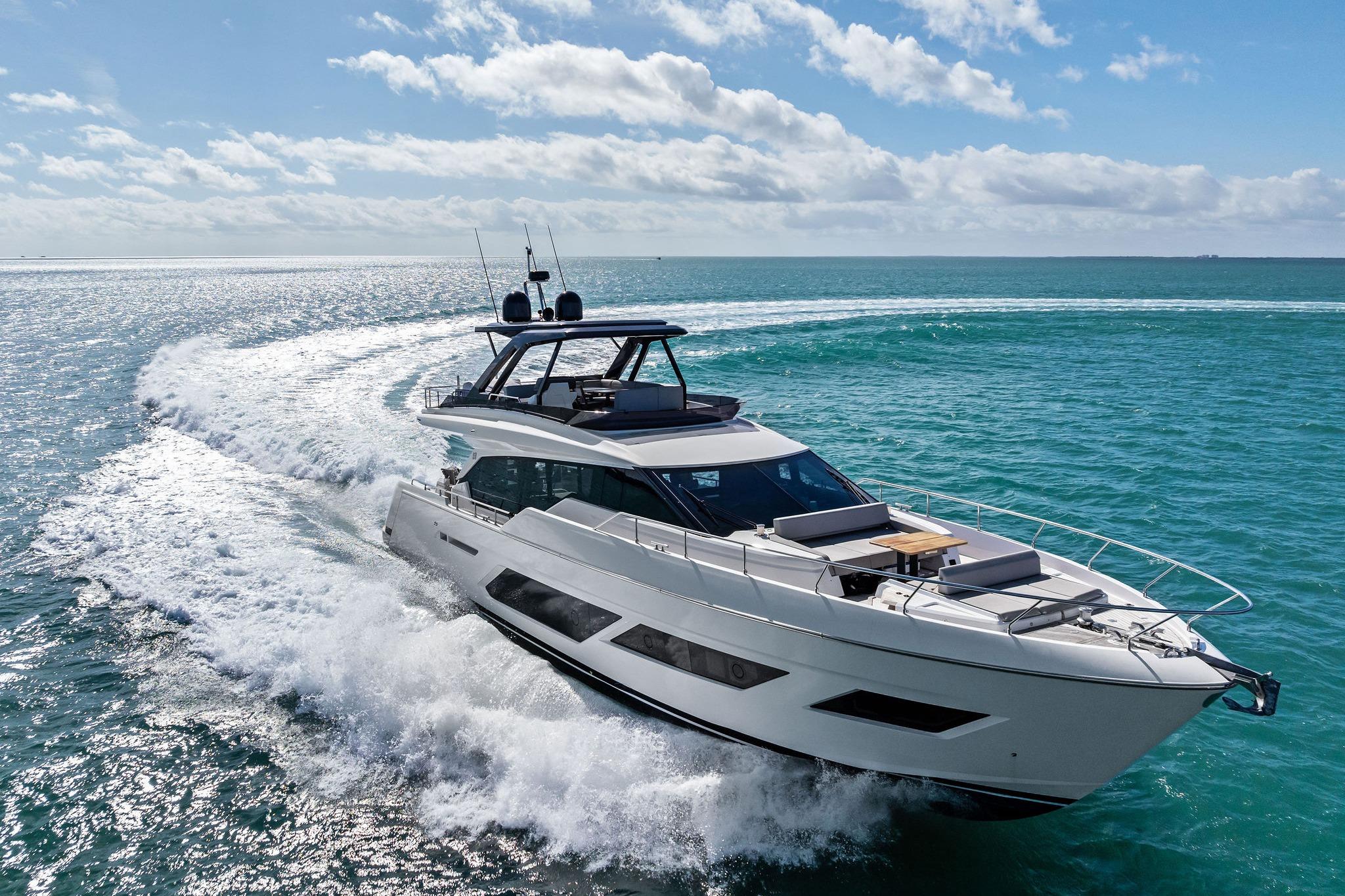 The Ferretti Yachts 720 debuted at the 2019 Cannes Yachting Festival and caused an immediate stir. With her amazing spaces, unexpected headroom and abundance of areas to enjoy, she takes the cruising experience to a new level. She is the fruit of a partnership between our Product Strategy Committee and the Engineering department – the second yacht with external design by Salvetti and Ferretti Group, with interiors by our own architects and designers. The spacious master cabin echoes the play of colors and materials that grace the main deck, in a peerless private setting that’s a joy to discover.